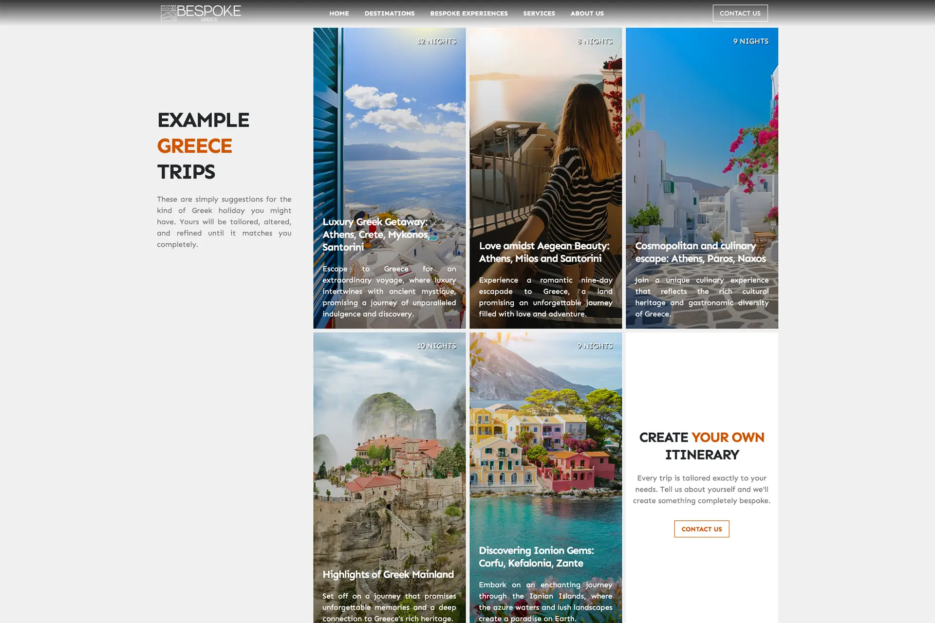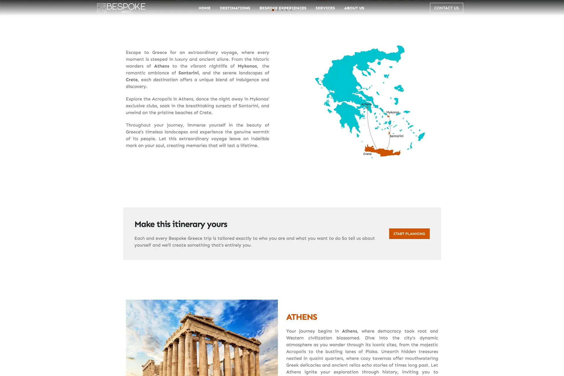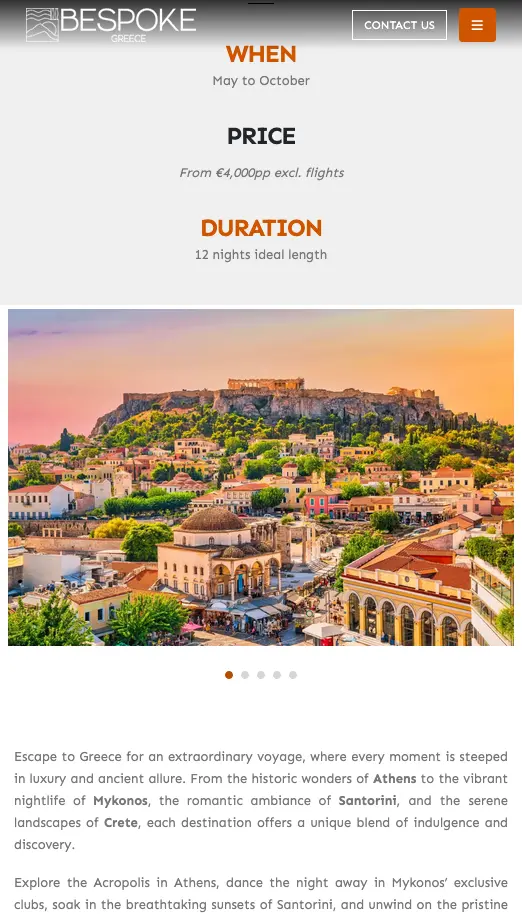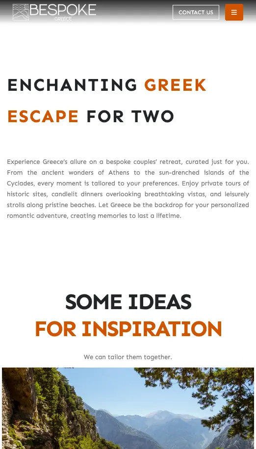 Bespoke Greece is a bespoke travel platform crafted to inspire and guide travelers through unique, tailor-made journeys across Greece’s most captivating destinations. The website showcases immersive experiences — from ancient cultural explorations and luxury island retreats to culinary adventures and personalized itineraries — all designed with meticulous attention to detail to reflect each traveler’s individual desires.