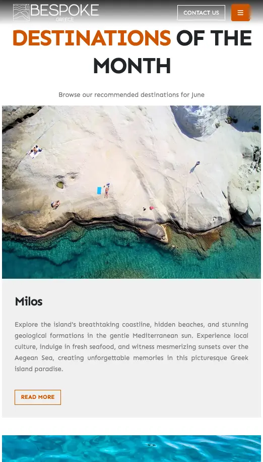 With a clean, intuitive design and rich destination content, the site invites users to explore the essence of Greece, connect with its landscapes and culture, and easily build a completely customized travel plan with expert support. At every step, the digital experience conveys the authenticity and passion behind the Bespoke Greece brand, helping transform travel aspirations into unforgettable memories.